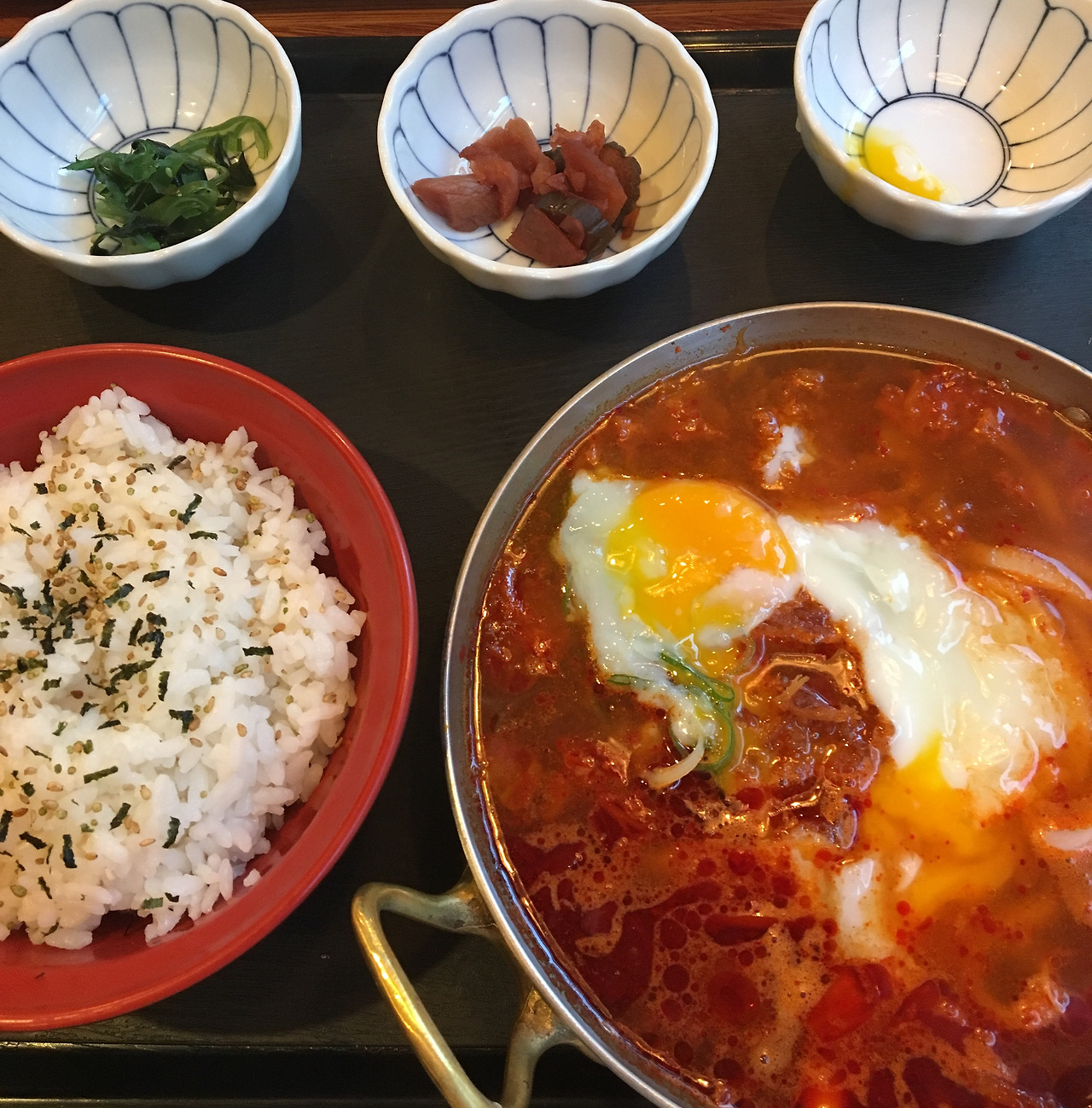 김치찌개보다는 덜 진하지만, 달달한 맛이 첨가되어서 입에 착 달라붙는 단짠의 맛인 데다가, 의외로 국물에 담긴 돈까스도 바삭하고 촉촉한 맛이 살아있었다. 물론 시간이 지날수록 눅눅해지는 건 어쩔 수 없지만. 면과 튀김을 해치우고 밥을 말아 먹을 때의 풍요로움! 나를 혼미하게 만들 정도로 아찔한 매운맛! 거짓말이 아니라, 오늘 직장에서 쌓인 스트레스가 풀리는 느낌이었다(하지만 김치나베를 먹다가 하얀 옷에 국물을 다 튀기는 바람에 다시 스트레스가 쌓인 건 반전).