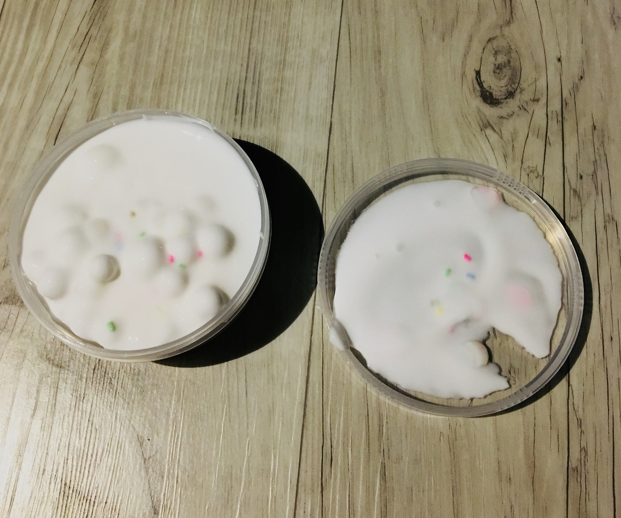 아무튼 인스타그램에서 슬라임 덕후들의 추천과 리뷰를 봤던지라 아무 슬라임이나 사고 싶지는 않았다. 그래서 그들이 추천한, 소위 ‘슬켓팅’을 해야만 건질 수 있는 슬라임을 사기로 결심했다(나는 슬켓팅으로 사지는 않고, 유명 제작자가 오프라인에 납품하는 곳에서 구입했다). 집에 돌아와서 반은 설레는 마음, 반은 의구심을 가지며 뚜껑을 열어 슬라임을 꺼냈는데,
