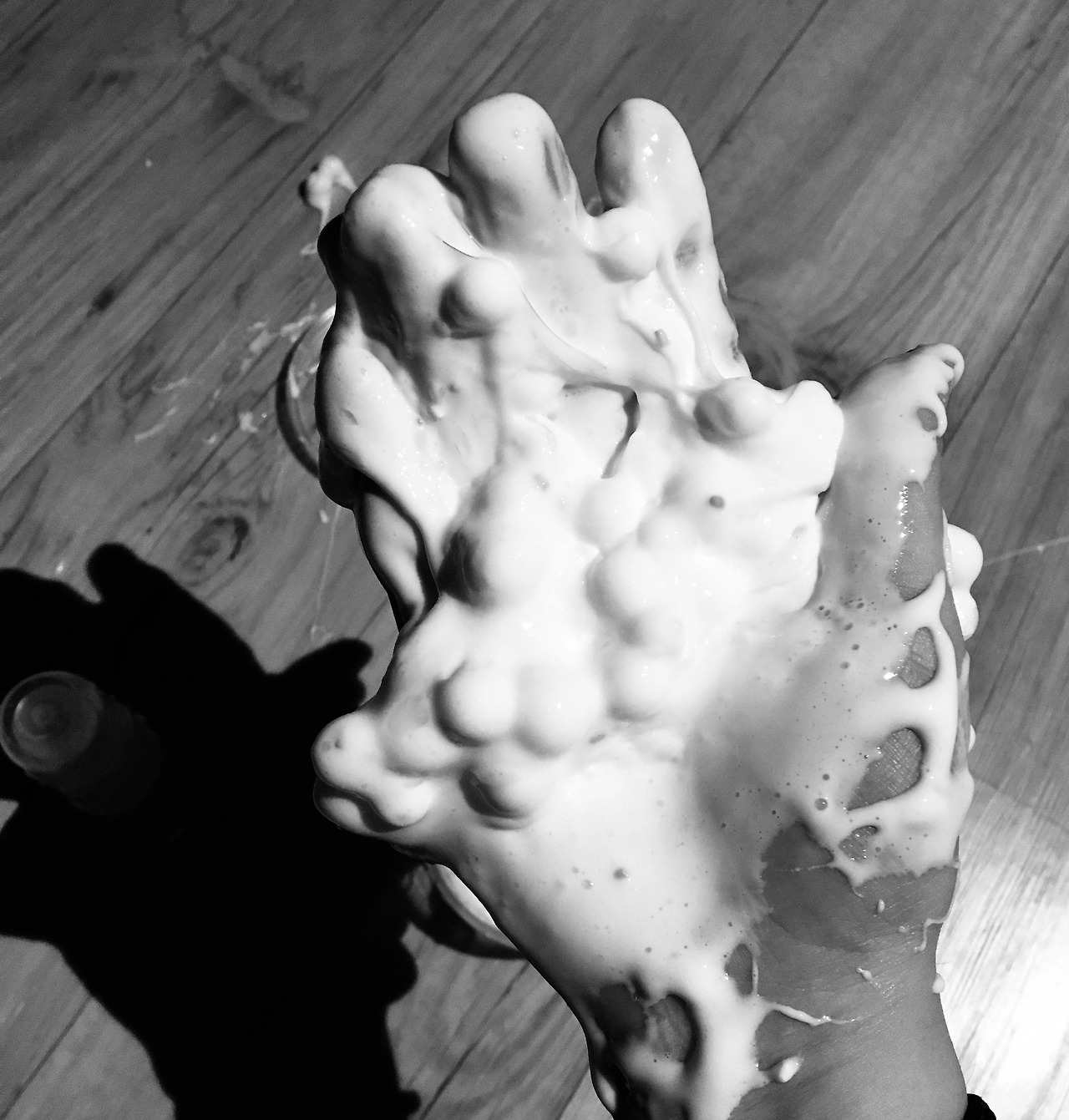 입이 떡 벌어질 정도로 행복한 질감이었다! 말랑하고 푹신하고 물컹한 촉감인데, 덕지덕지 묻다가도 손으로 문지르면 금방 떨어져 나갔다. 온도에 따라서 물 흐르듯이 손가락 사이로 미끄러지기도 했고, 조금 시원하게 냉장고에 넣어놓으면 덩어리져서 푹신한 촉감이었다.