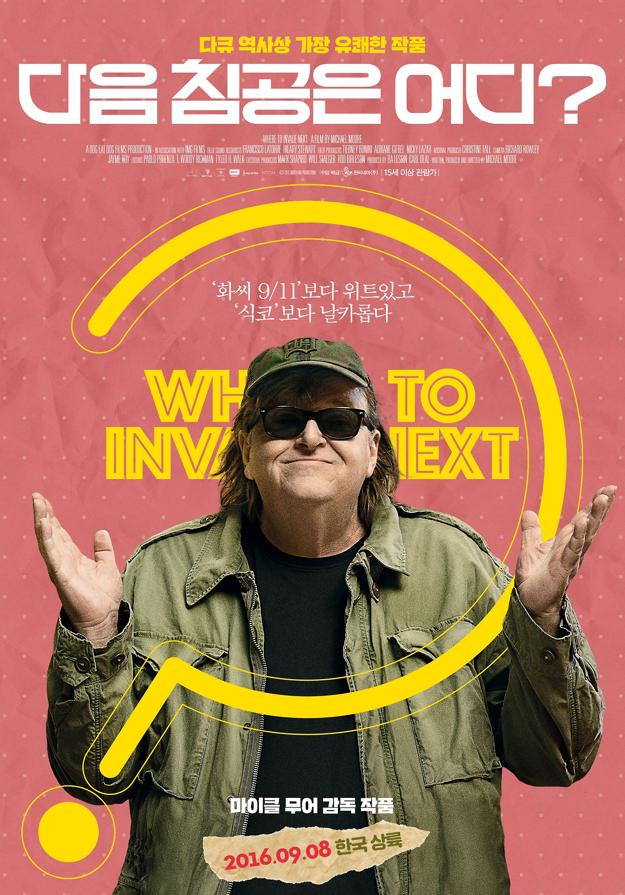 아이폰의 이모티콘 목록 마지막에는 수많은 국기가 있습니다. 세상에 이렇게 나라가 많구나 싶죠. 여기, 그중 8개의 국가를 침공한 미국인이 있습니다. 바로 다큐멘터리 감독 마이클 무어. 그는 국방부로부터 아주 은밀한 지령을 받습니다. 유럽 국가를 침공해 미국이 필요한 것을 빼앗아 가져오는 것! 마이클 무어는 프랑스, 독일, 핀란드 등을 돌아다니며 코스 요리급 급식, 선진 교육의 비결, 인권 의식 등을 훔쳐 옵니다(!).