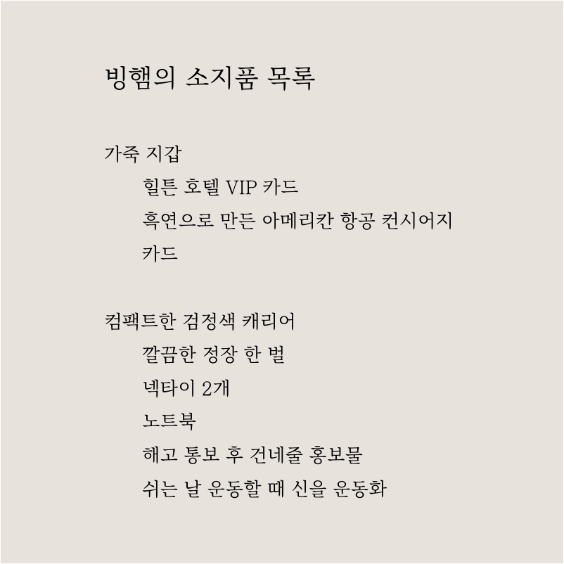 지난 크리스마스에는 영화 <인 디 에어>를 오랜만에 다시 보았어요. 이 영화에는 앞에서 소개한 책 <자유로운 여행자들의 목록>과 참 어울리는 주인공 빙햄(조지 클루니)이 등장합니다. 빙햄은 일 년 중 322일은 미국 전역을 돌아다니며 다른 회사의 해고를 대신 통보하는 일을 하는데, 그는 이런 삶을 너무나 좋아합니다. 집보다는 호텔 방과 기내가 편하고, 인생은 혼자 사는 거라는 신념하에 복잡한 연인 관계를 피해 가벼운 관계만 갖죠. 그는 무엇보다도 자유에 집착하며 주변 사람들, 심지어 가족까지 밀어내고 비워냅니다.