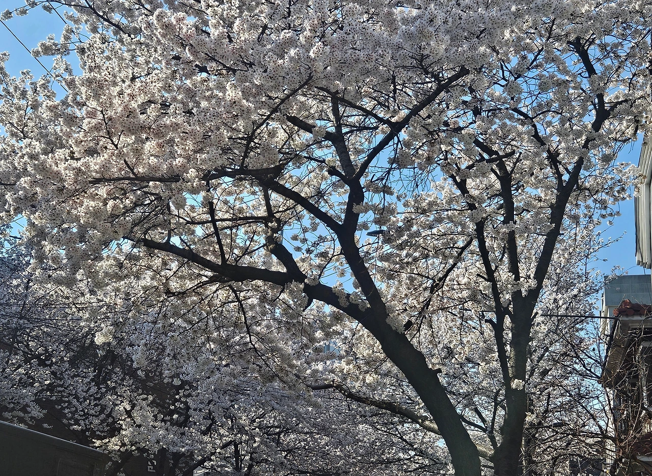 올해도 우리 집 앞 골목에는 어김없이 벚꽃이 만개했다. 최근 인스타그램에서 우리 동네가 일명 '벚꽃 맛집', '핫플'로 유명해지며 꽃나무보다 사람이 더 많고, 경찰차가 끊임없이 순찰을 돌며 '차도에 계신 분들 인도로 올라서주세요! 차가 못 지나갑니다!'하고 끊임없이 사이렌을 울려대는 진풍경이 벌어지기도 했지만, 그래도 봄은 봄이고 꽃은 꽃인지라 눈에 급히 바르기에도 참 예쁘장한 풍경이었다.