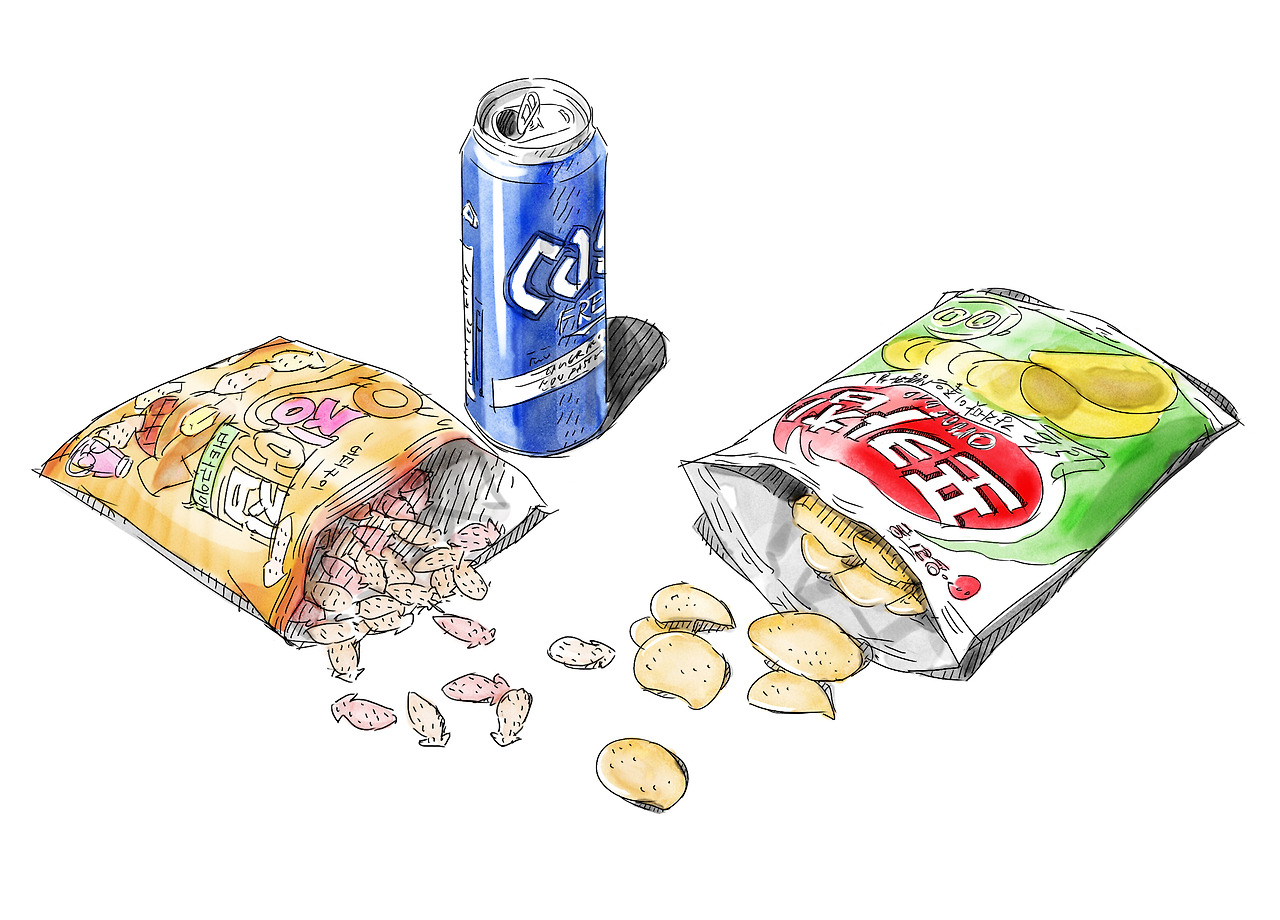 조선 시대 같았으면 아들 뻘 되는 아이의 간식이나 빼앗아 먹는 파렴치한 여고생 이야기를 꺼내는 건 부끄러운 일이지만, 굳이 이 이야기를 꺼낸 이유는 따로 있다. 과자는 뜯는 즉시, 될 수 있으면 빠른 시간 안에 먹어야 그 특유의 바삭바삭함을 잃지 않을 수 있다는 주장을 하고 싶은 것이다!!!! (강력히 주장하고 싶을 땐 느낌표를 여러 개 찍게 된다.) 그것이 바로, 과자에 대한 예의다. (그러니까 그 꼬마가 과자를 나와 좀 더 나누었다면 좋았을 거라는 이야기다......)