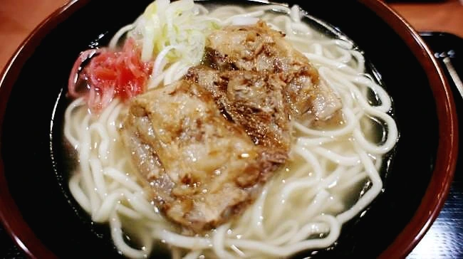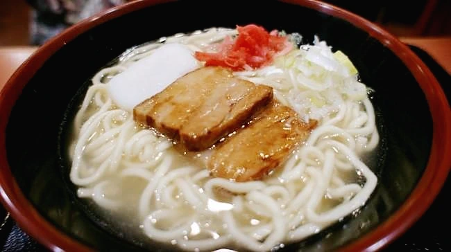 오키나와 정통 음식 중 하나. 메밀이 아닌 밀가루로 만든 면과 면 위에 얹혀 있는 삼겹살이 특징. 돈코츠와 가츠오로 국물을 우려낸다.