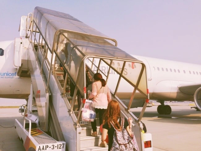 마치 영화에서처럼, 따로 설치된 계단으로 비행기에 오르는 것도, 문이 한 개라 비즈니스 석을 지나 자리에 앉은 것도 모두 처음 해 보는 신기한 경험이었다. 게다가 오키나와에 도착한 후에는 비행기 창문을 통해 짐을 내리는 모습까지 아주 가까이에서 볼 수 있었다.