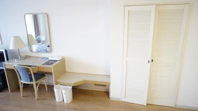침대 반대편. 텔레비전과 화장대, 그리고 옷장. 옷장을 열면 금고도 있고, 수건도 있고, 유카타도 있다.