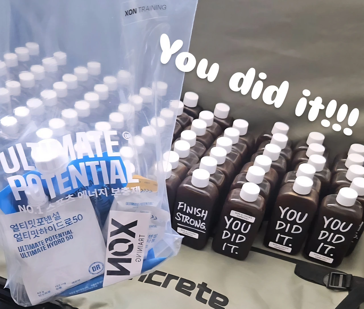 대회 시작 전에 운동하던 센터에서 응원용으로 준비해 준 물품들(에너지젤, 에너지 보충제, 에너지 부스터 등)을 받았는데, 그때 나눠준 물품 중 커피에 적혀있던 문구가 이번 대회의 전부를 말해준다. 그 수많은 이유와 과정을 거쳐서 어찌 됐건 했다, 결국엔.