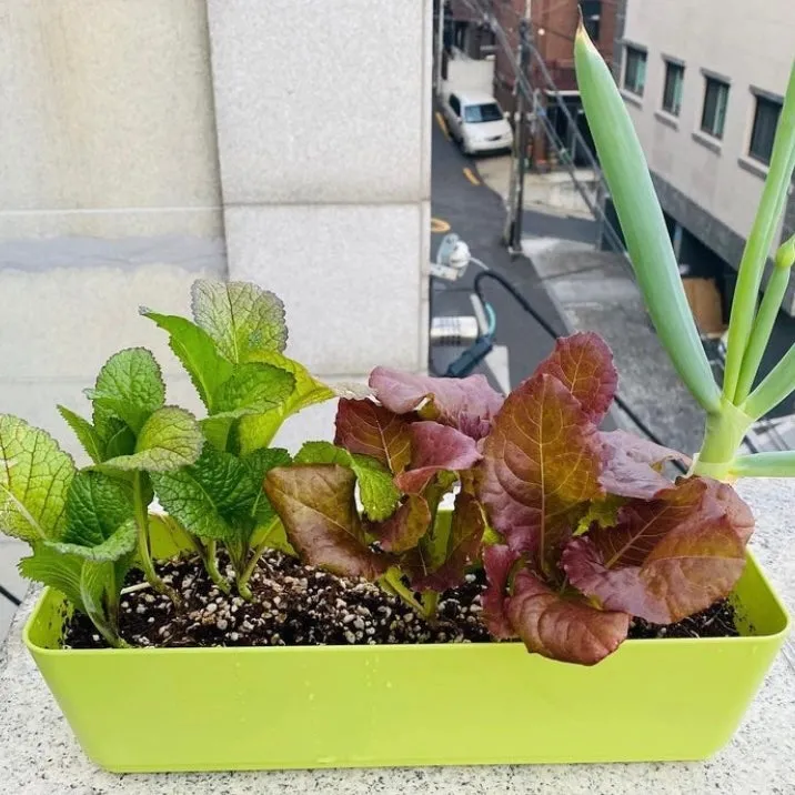 햇빛도 들고 비도 내리니 작은 텃밭을 꾸미면 좋겠다고 생각했다. 없는게 없다는 다있소에 마침 텃밭 키트가 나와있었다. 화분, 흙, 씨앗까지 한번에 해결할 수 있는 미니 텃밭 키트. 우리는 고민 끝에 상추와 적겨자가 있는 키트를 선택했다.