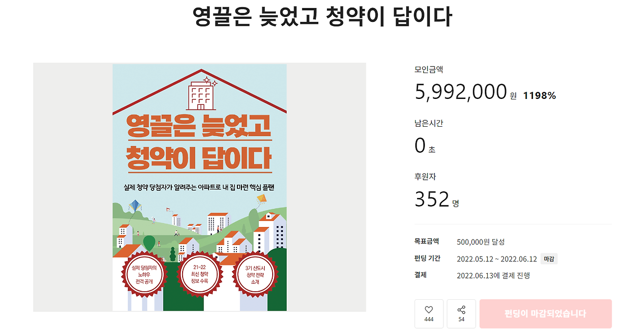 텀블벅은 크라우드펀딩 사이트인데요. 목표금액이었던 50만 원을 훌쩍 넘는 좋은 결과가 나와서 출간 부수를 늘리게 되었습니다.