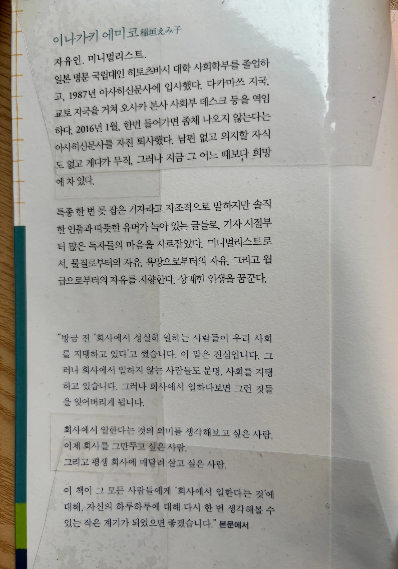 회사에서 일한다는 것에 대해 생각해 보는 계기가 되었으면 한다는 책날개의 문구부터 인상적이었어요.