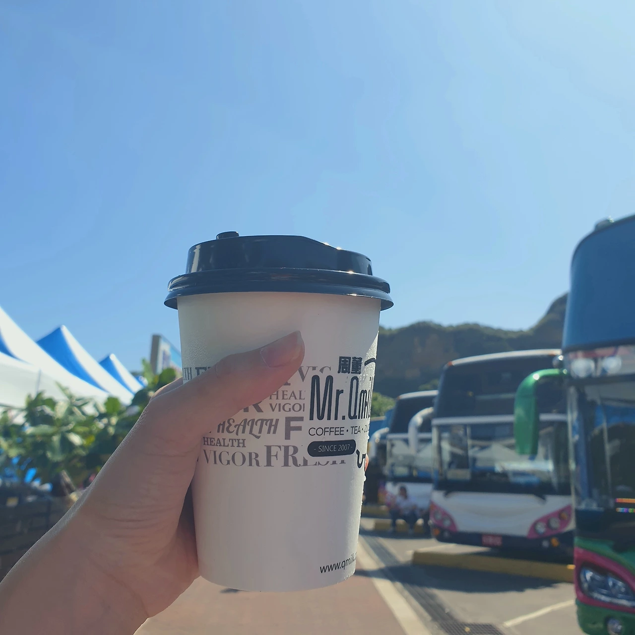 조식을 먹고 버스 투어 집합 장소인 타이베이 메인 역으로 갔다. 투어에서 준 소금커피로 하루 활력을 불어넣었다. 보통은 둘 씩 온다. 운 좋게 혼자 온 사람 옆에 앉아 가면서 금방 친해졌다.