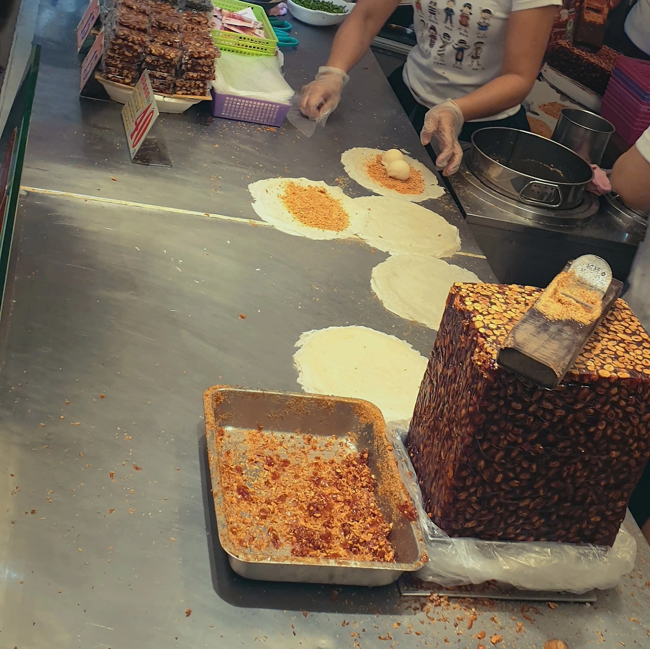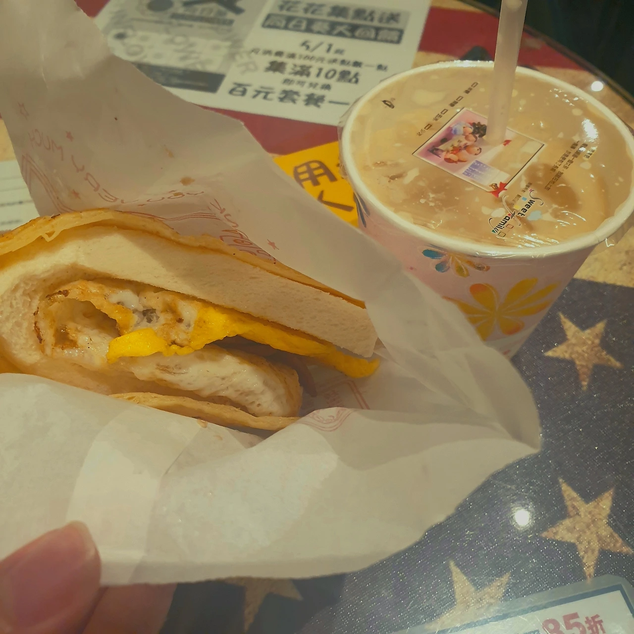 자연스럽게 조식을 먼저 먹었다. 가오슝과는 달리 -어차피 가오슝에서도 다른 곳에서 먹는 날이 더 많았지만- 타이베이에서 묵었던 게스트하우스에서는 조식을 서비스하지 않았다. 구글 지도에서 숙소 근처 조식 집을 찾아 별점이 괜찮은 곳으로 방문했다. 계란 들어간 치즈 플랫브레드와 녹차나이차가 궁금해서 주문했다. 꽤 맛있었지만생소한 맛이었다. 한국에서는 녹차라떼의 녹차와 말차를 혼용하는 경우가 있는데, 중화권에서 녹차를 주문할 때 말차를 기대하면 안 된다. 맛이 다르다.