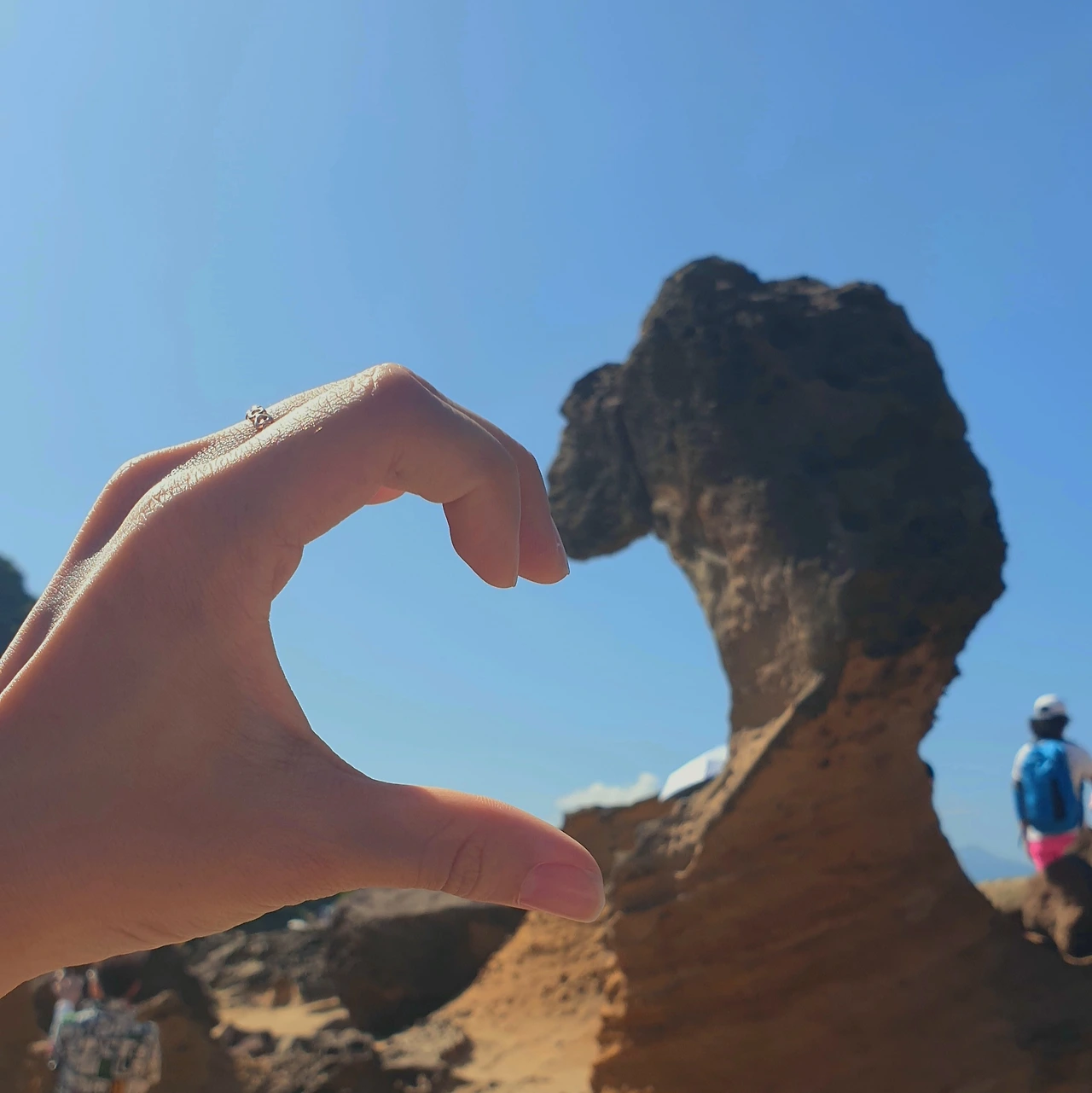 첫 번째 코스 예류 지질 공원 역시 그랬다. 예류 지질 공원은 기암괴석으로 유명하다. 그중 제일은 여왕 머리 바위이다. 예상대로 사람들이 사진 찍으려고 길게 줄을 서고 있었다. 가이드 추천대로 여왕 대신 공주 바위로 대신해 사진을 찍었다. 가이드가 하트 모양 포즈도 추천해준다.