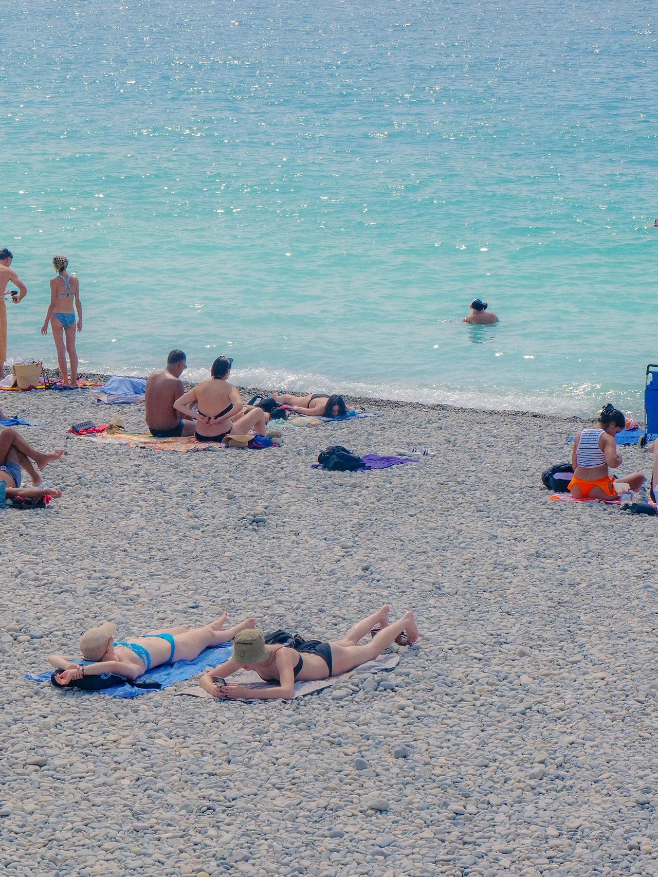 숙소를 둘러보고 난 후 본격적으로 해변에 갈 준비를 했다. 파라솔, 튜브, 스노쿨링 고글, 돗자리, 책, 납작복숭아, 물을 챙겨 가장 가까운 해변으로 향했다. 눈부신 햇살이 따갑게 내리쬐는 해변에는 모래사장이 아닌 돌사장이 펼쳐져 있었고 그 위에 많은 사람들이 일정하지 않게 널부러져 있었다. 여자고 남자고 구릿빛 피부를 위해 상의를 완전히 탈의하고 태닝을 한다. 한국에서 나고 자란 여자들로서는 놀라지 않은 척도 못하고 여실히 컬쳐쇼크를 드러내고 말았다. 그런데 놀라는 사람들은 우리밖에 없었다. 아무도 그들을 놀라운 시선으로 쳐다보거나 이상하게 보지 않았다. 그저 인간에게 있는 신체의 일부임을, 그 어떤 것보다도 당연한 사실인 것을 그대로 받아들이는 것이다.