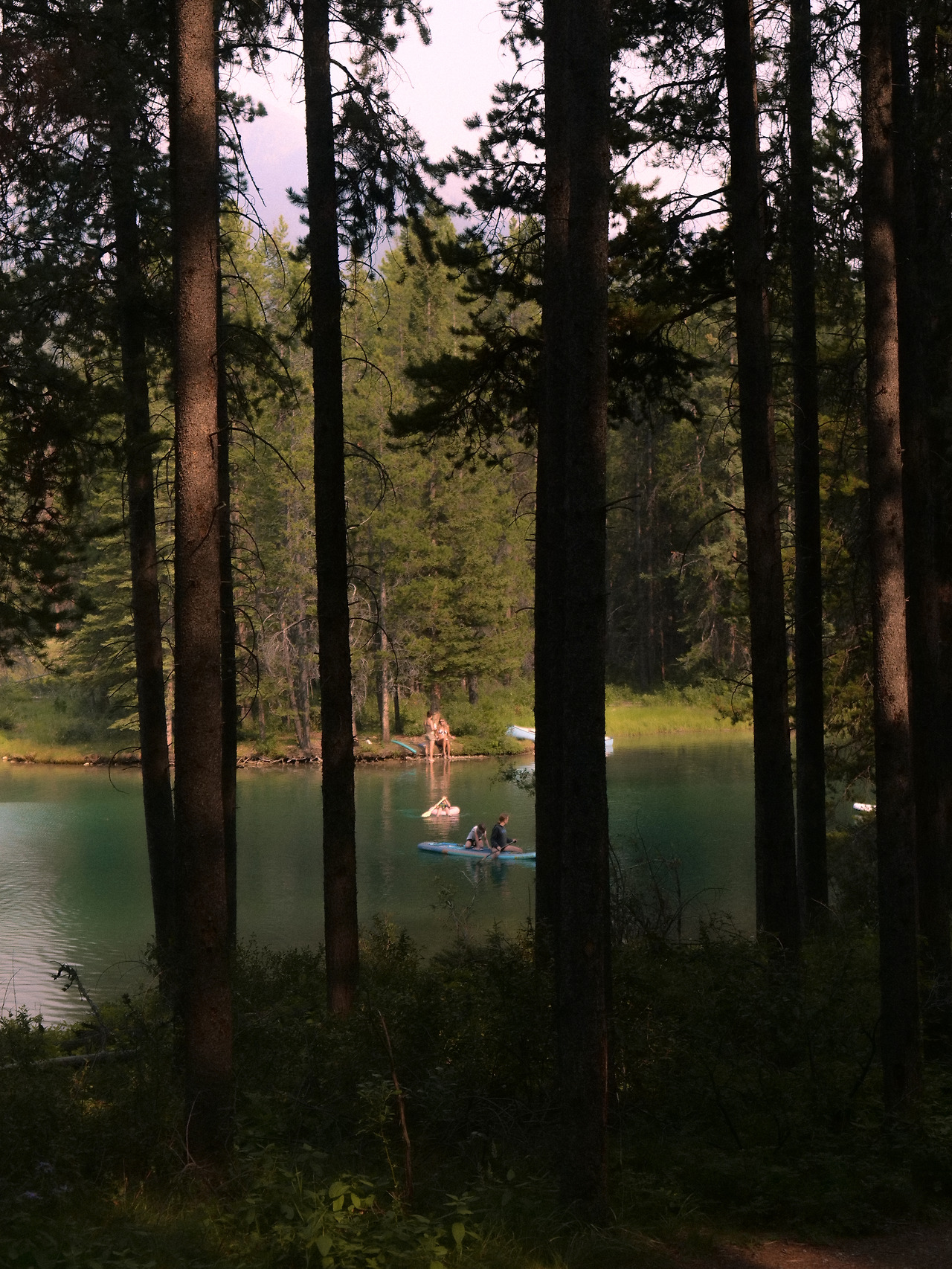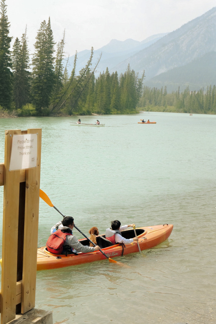 일주일만에 오는 꿀같은 휴일이었다. 그렇다고 집에 누워있을 순 없다. 밴프에서는 시간이 날 때마다 무조건 나가 노는 것이 이득이라고 다들 말했다. 여유롭게 일어나 점심을 챙겨 먹고 가벼운 옷차림으로 출발했다. J는 자기 몸만한 가방 속에 패들보드와 구명조끼를 챙겼고, 언니는 피크닉 준비물들을 챙겼다. 나는 카메라와 책, 아이패드 등을 챙겼다. 버스는 20분 정도 달려 목적지인 투 잭 레이크에 도착했다.