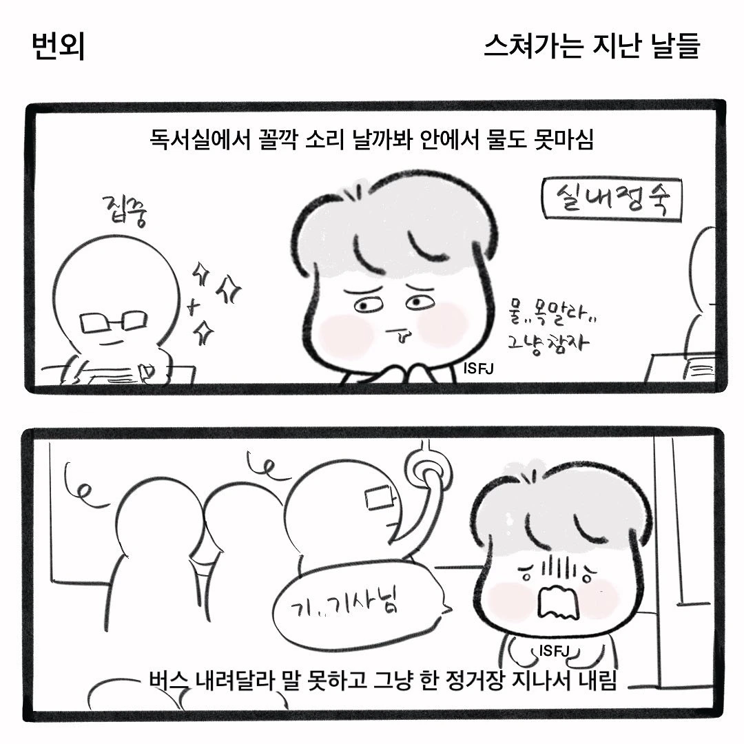 소심함 + 주변에 대한 지나친 배려로 오히려 본인이 힘들어하는 유형인 잇프제 (isfj)