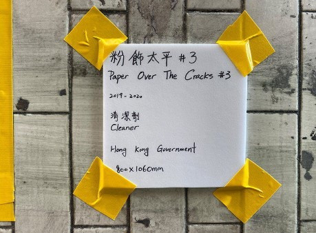 우매한 총부리는 ‘안’으로도 향한다. 2019년 홍콩의 무장 경찰은 시민들로 하여금 우산을 들게했고, 2021년 미얀마 에서는 자유를 품은 세 손가락을 들어 결의를 표했다. 쿠데타에 반대하는 양곤의 젊은 작가들은 저녁마다 공공장소에 사진이나 영상을 상영하며 창의적인 항의 작전을 전개했다. 홍콩의 작가 Giraffe Leung Lok Hei 梁洛熙는 〈Paper Over Cracks〉 연작으로 권력의 추악한 모습을 포착한다. 홍콩의 관리들은 도시 곳곳에 휘갈겨진 운동의 슬로건을 가리고자 어설픈 페인트칠을 해왔는데, 작가는 이를 민주주의를 상징하는 노란색의 테이프로 표시해 권력의 검열 현장을 드러내며 조롱한다.