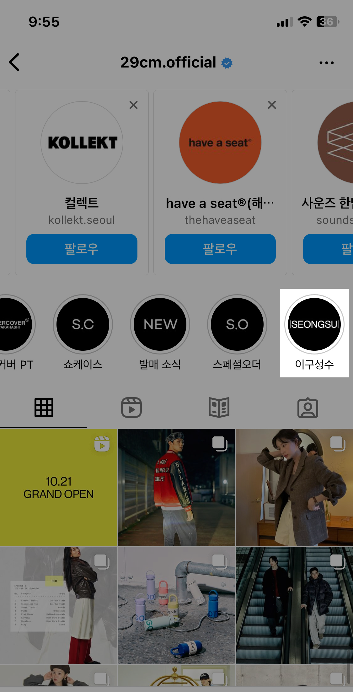 먼저 공식 및 오프라인 공간 (이구성수) 의 인스타그램 계정이다. 대부분의 유저가 공식 인스타그램 (약23만) 에서 오프라인 공간 소식을 접할 것으로 추정된다. 이구성수 계정의 팔로워가 약 2천명인것으로 보아, 온오프라인의 접점을 확대시킬 주요 채널로 보기가 어려웠기 때문이다.