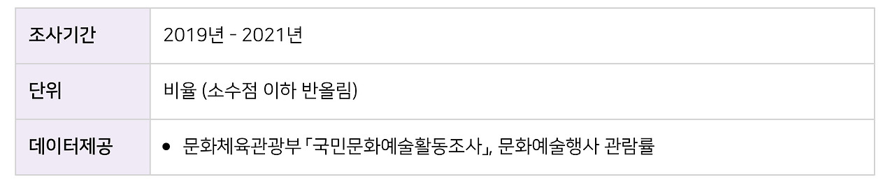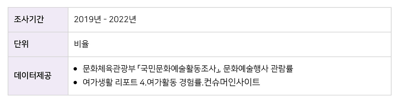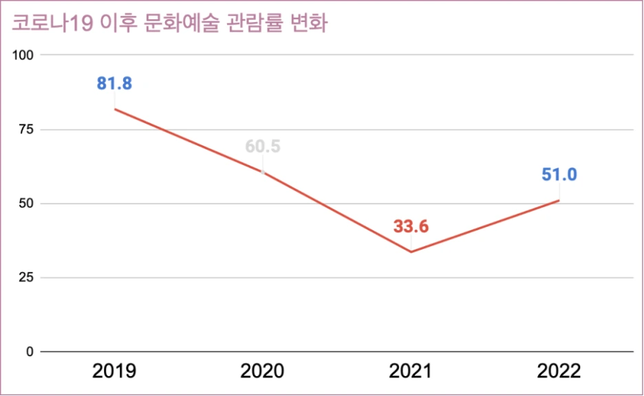 하지만 문화예술 관람률은 경제적 이슈에 영향을 많이 받는 산업이기 때문에 현재 물가상승률이 급증한 상황에서 관람률은 다시 하락할 수 있다.