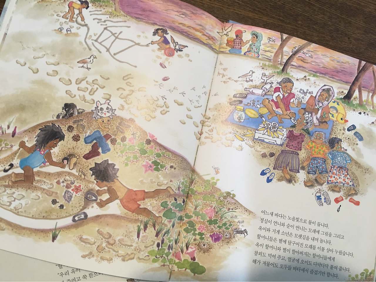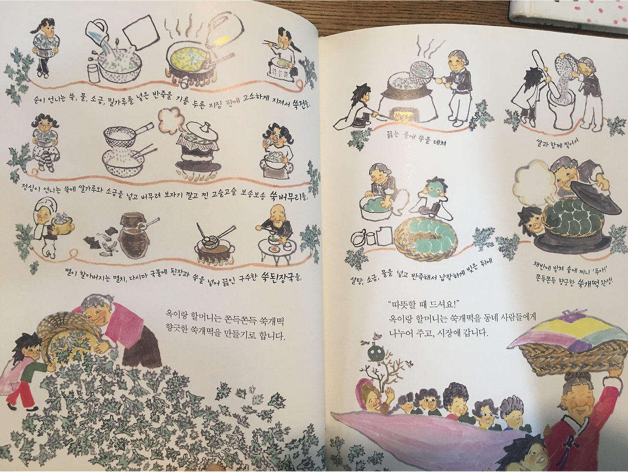 어찌 보면 사계절 우리 땅에서 나는 식재료 지도 그림책이기도 하고, 또 어찌 보면 한국인의 밥상 동화 버전이기도 하고, 또 어찌 보면 할머니와 아이의 가슴 따뜻한 얘기가 담긴 동화이기도 해서 계절별로 50-60 페이지 되는 길지 않은 내용이지만 그림 보는 맛, 계절별 식재료 찾는 맛, 밥상에 올리는 요리 순서 보는 맛 뭐하나 빼놓을 게 없어 두고두고 보기 좋다.