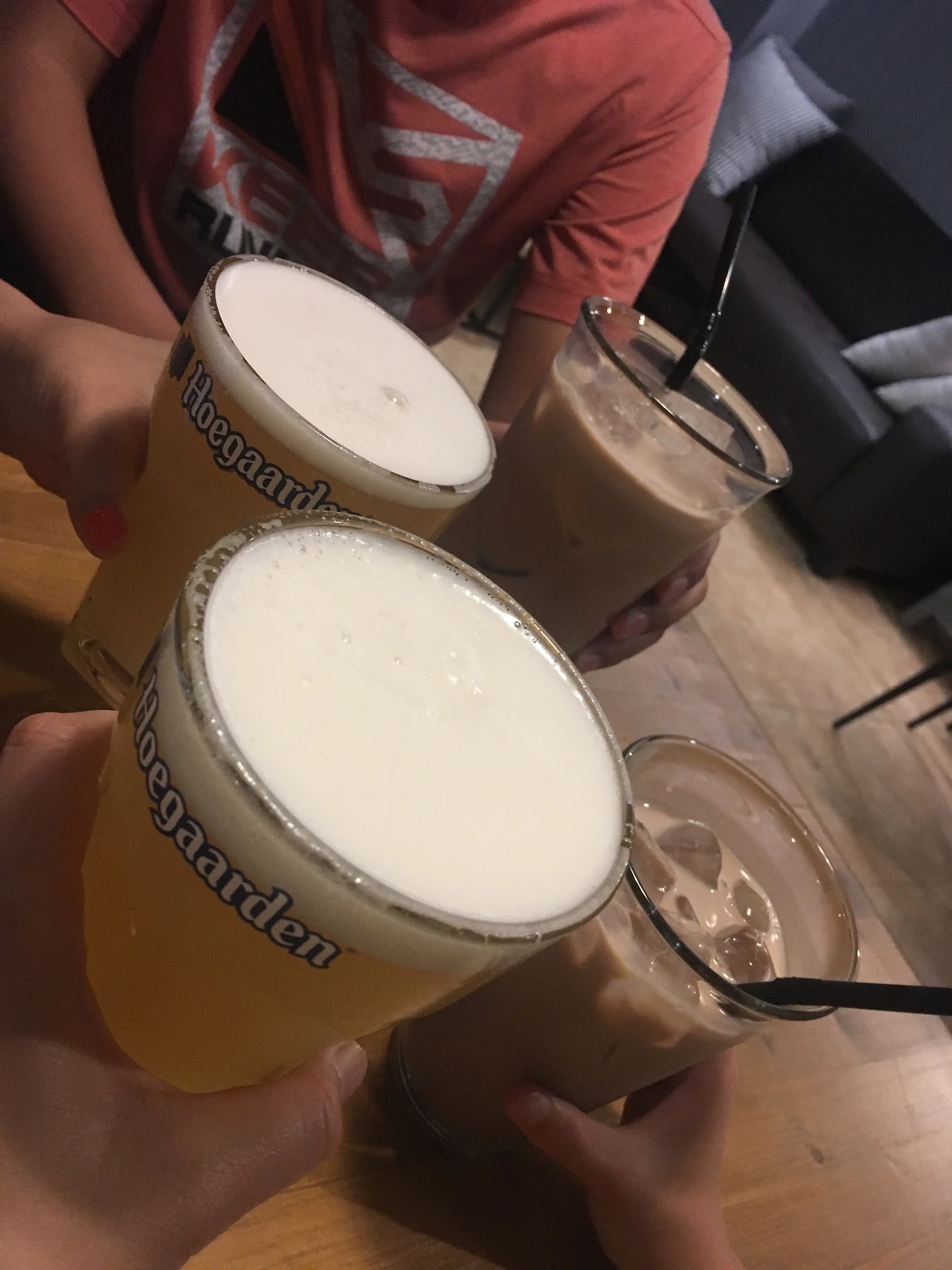 저녁 식사를 마치고 김광석 노래가 나오는 동네 카페에서 호가든 생맥주와 아이스 초코 라테로 하루 마무리한다.