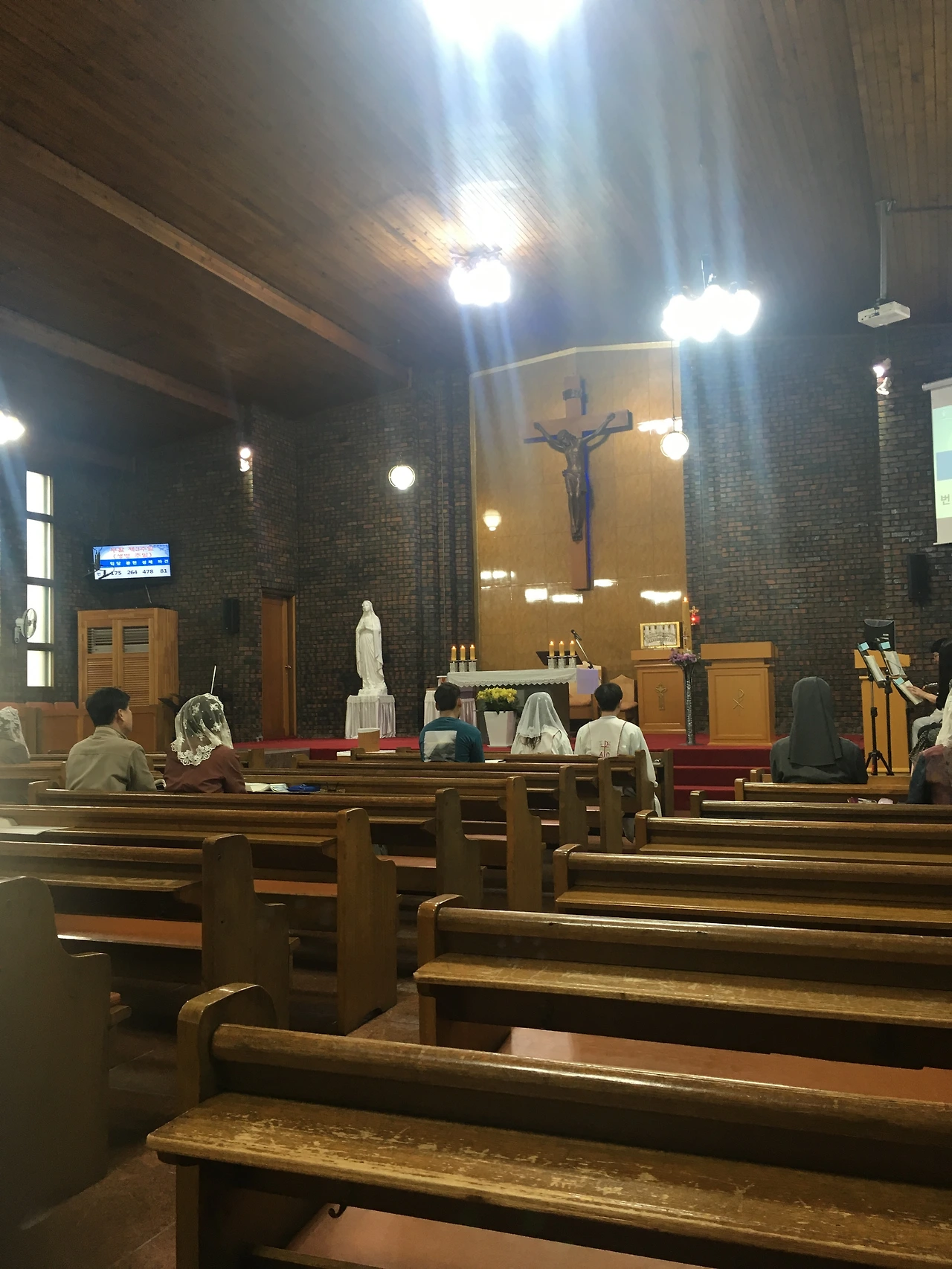 여행지에서 주일이 겹치면 여행 시 성당을 찾아 미사를 드리는데, 지난 3월엔 100년 된 인천 답동 성당에서 이번엔 60년 된 김해 성당을 찾아 미사를 드렸다. 조용한 시골 성당이라 신자들이 많지 않았고 성당이 화려하진 않았으나 손수 주보를 받아 주고, 신자들 하나하나 인사해주시는 신부님이 계셔서 편안한 마음으로 주일 시간을 보냈다.