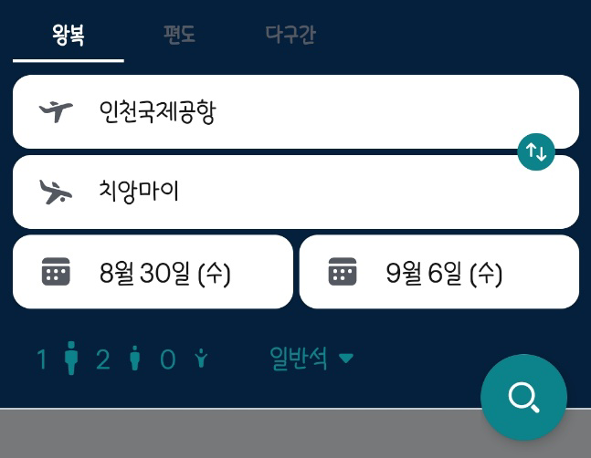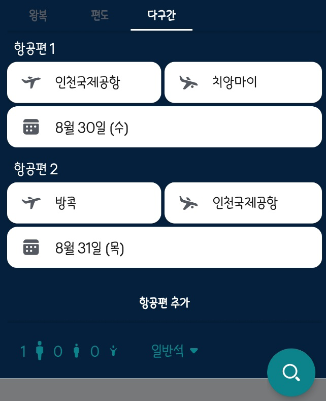 치앙마이만 다녀온다면 왕복으로 검색