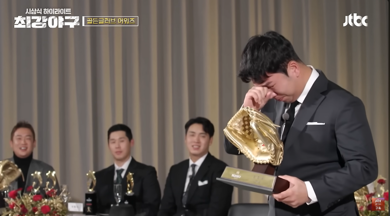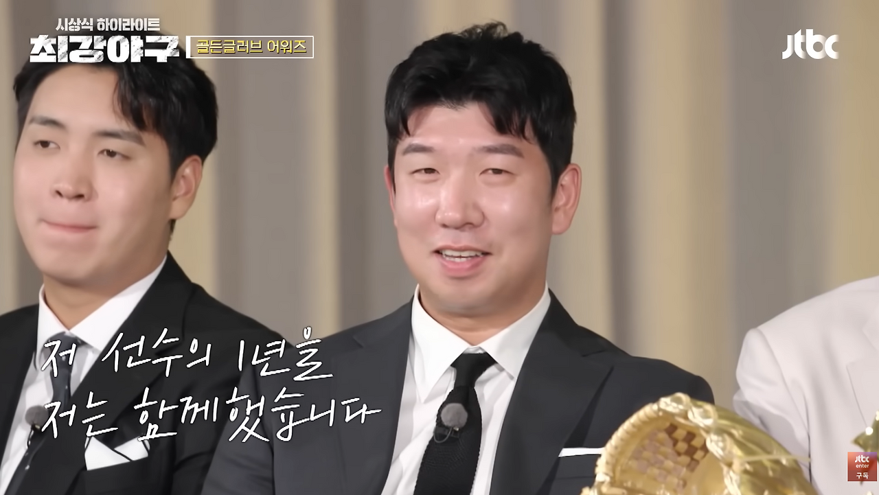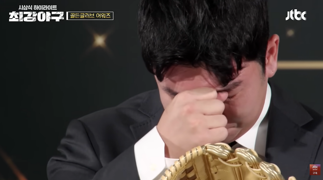 이렇게 가까이서 이대호 선수를 보다니! 하는 신기한 마음에 다가갔지만 내가 그 인파를 뚫고 사인을 받아야겠다고 결심한 건 신재영 선수가 나왔을 때다. 전생이나 현생이나 나의 최애는 신재영 선수였다. 나는 기존 야구팬이 아닌 채로 불꽃야구에 유입되었고, 내가 프로그램에 빠지게 된 것의 8할은 김성근 감독 때문이었다. 너무나도 닮고 싶은 리더상이자, 살면서 한 번은 만났으면 싶은 스승상이었다. 은퇴한 선수들이 느슨하게 야구하던 분위기에서 현역 선수들이 전력을 다하는 분위기로 바꿔놓은 장본인이었고, 그 리더의 진심이 선수들에게 또 제작진에게 전파된 후 매주 거듭나는 모습은 독보적이었다. 그 유명한 "돈 받으면 프로다"의 정신이 점점 침투하는 한 주 한 주를 보며 유니폼을 사면 무조건 마킹은 김성근 감독 이름으로 하겠다고 생각했던 나의 마음이 신재영 선수로 향하게 된 것은 2023년 겨울 시즌을 마무리하며 진행한 시상식 때문이었다. 가장 기대되는 두 가지 시상 중 박재욱 선수가 신인왕을 받고 MVP 시상으로 넘어가려던 순간, 장시원 PD는 "그런데"로 말문을 시작하며 "신재영이 신인왕에 못 미치는가"라는 질문을 두고 "이 선수에게 신인왕을 [주지 않으면] 최강야구를 안 하든 다른 프로그램을 하든 저 선수가 계속 떠오를 거 같다"며 공동 수상을 하게 되었다. 그때까지는 그저 박재욱 선수도 신재영 선수도 충분히 받을만하다는 마음으로 방송을 보고 있었는데, 신재영 선수는 상을 받으러 올라가자마자 고개를 떨구며 눈물을 터뜨리고 말았다.