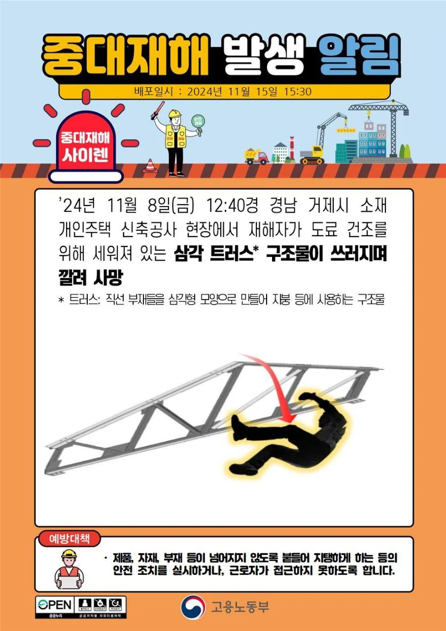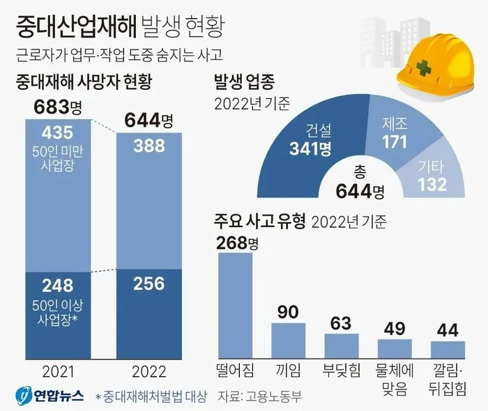 산업재해는 미미하나마 줄어들고 있다. 안전관리 의무가 점점 강해지고 있고, 안전에 대한 노동자 스스로의 의식도 계속 높아진다. 인력으로 막을 수 있는 것들이 있다는 것이다. 사람을 덮쳐 죽음에 이르게할 정도의 중량물이라면 철저히 고정하고, 사람을 받치는 시설물은 튼튼하게 만들어야 한다. 사다리작업은 2인 1조로 하고, 인도와 장비이동로를 구분해야 한다. 산업안전보건법이 천 여가지 안전수칙을 정하고 있다. 하지만 지켜지지 않는 현장이 태반이고, 그래서 나는 사고도 상당수다. 지킬 건 지키자. 안전수칙을 지키면 목숨을 지킨다. 그게 어려운 일인가?
