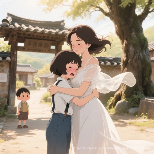 편안한 흰색 원피스를 입고 서계시는 어머니를, 붉어진 눈으로 흐릿하게 바라봤다.