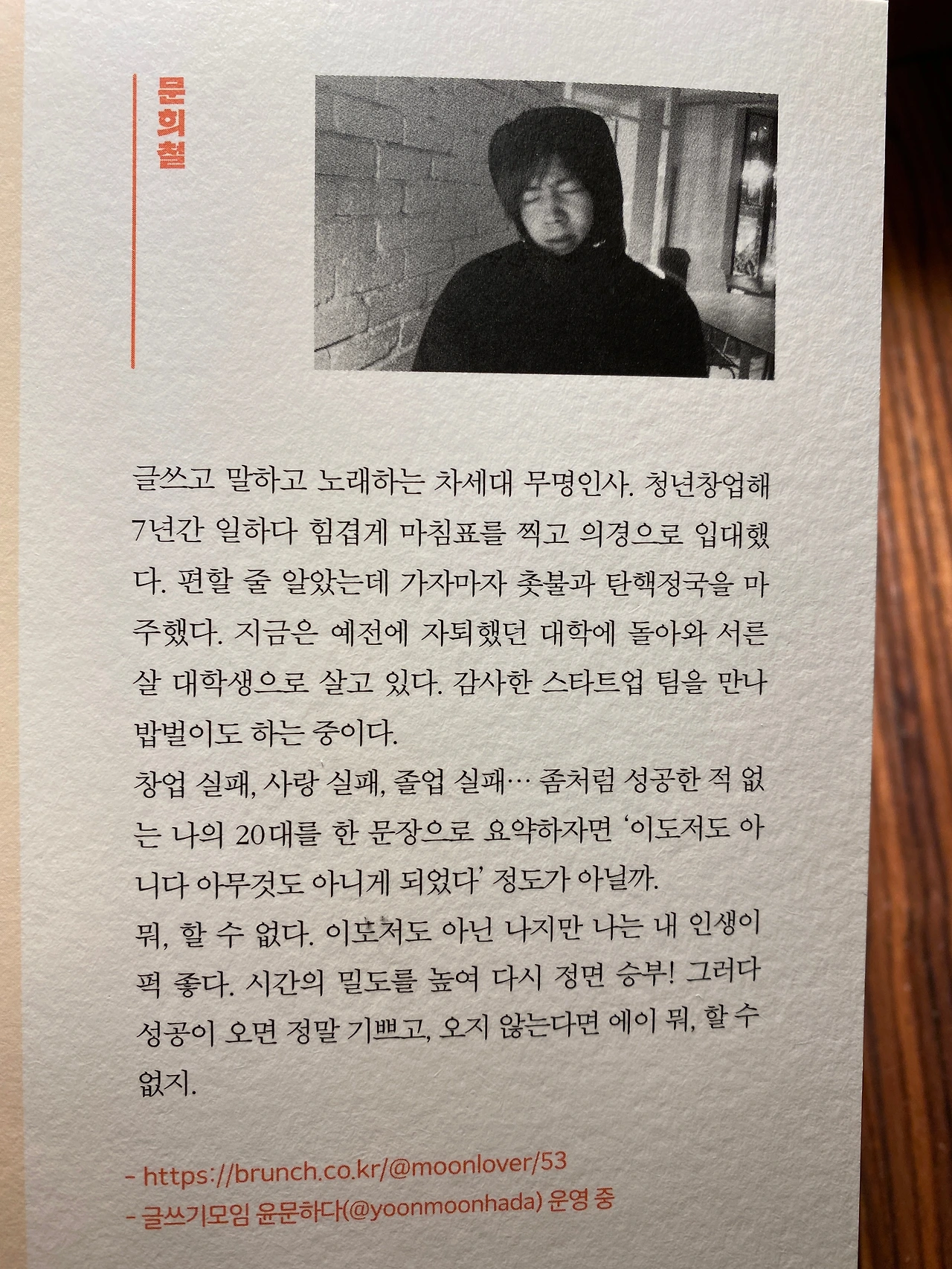 이 책은 무려 ‘삶에서 만나는 크고 작은 다양한 어려움에 관하여’ 이야기합니다. 그것도 대단한 업적이나 성취를 이루지 못한 ‘이도 저도 아니다 아무 것도 아니게 된’ 20대의 경험과 기억으로부터 출발하지요.