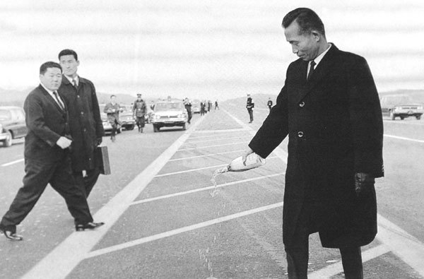 또 다른 산업시대의 상징은 기업인 정주영이었다. '왕 회장'님은 혈혈단신으로 기업을 일으키고 굴지의 기업으로 성장시켰다. 거북선이 그려진 동전을 놓고 선박 건조 계약을 따냈다는 이야기나 안 되는 것이 있을 때 "이봐 해봤어?"라고 물었다는 설화는 산업화 시대와 정주영을 각인시킨다. 또 경부고속도로를 초단기에 완공했다는 전설은 박정희, 정주영이라는 상징을 만나 카리스마를 더한다.