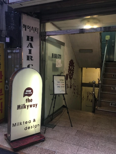 신촌지구대옆 화상손만두에서 '이화여대길' 쪽으로 걸어가면 바로 들어갈 수 있는 작은 골목으로 들어갈 수 있는 길이 나온다. 이 골목을 탐험하는 재미가 쏠쏠하다. 골목을 쭉 따라 걷다보면 '우리집 식당'이 있는데, 그 옆에 바로 'the milkyway'가 있다. 어떤 기대감을 가지고 들어가자. 밀키웨이는 2번 방문했다. 그리고 한 번은 제자와 함께, 두 번째는 비오는 날 혼자였다. 언제나 화상 손만두에서 식사를 한 뒤였다.