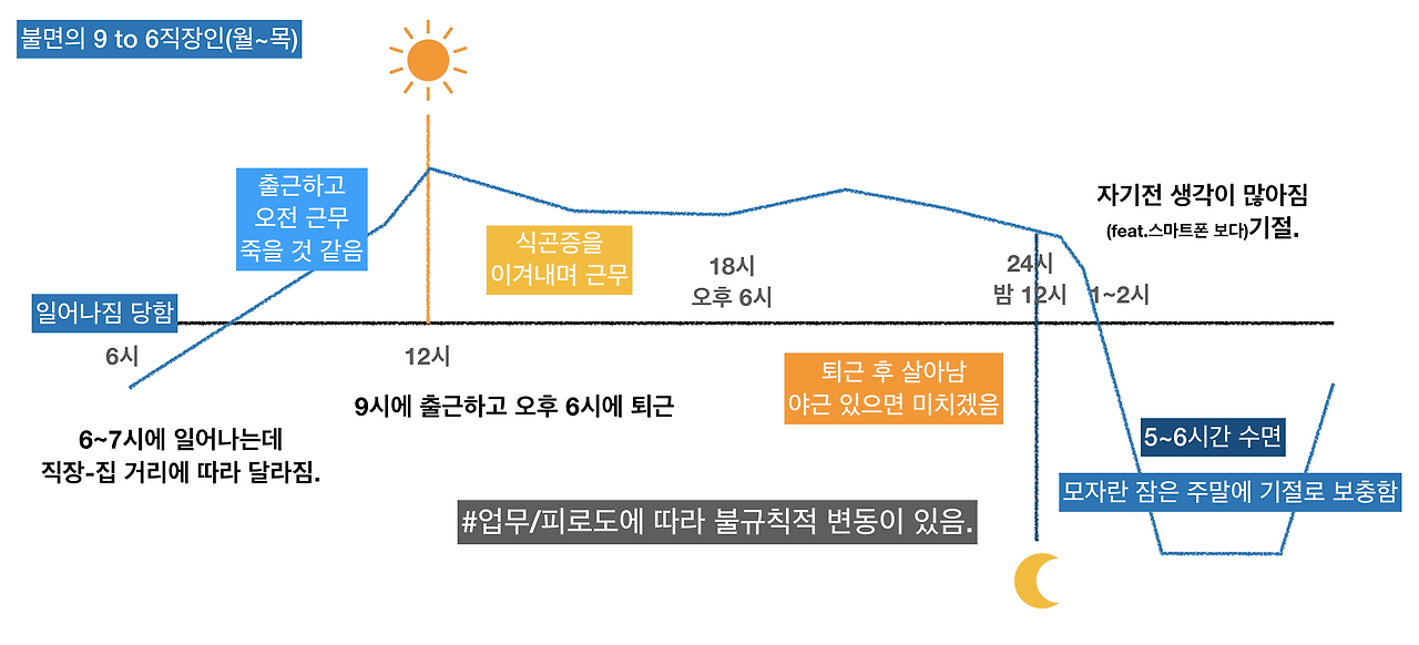 이겨내야 할 것은 잠보다도 잠을 못 자게 만드는 사회가 아닐까도 싶지만.. 사회가 어떻든, 개인은 뭐라도 해야 한다. 어려운 상황임에도 더 나은 잠을 위해 우리가 할 수 있는 노력도 분명 있을 것이다.