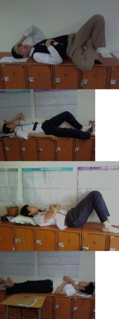 으아 그 삶은 정말 지옥이었다. 낯선 동네 친구들과도 친해지고, 공부도 하다 보니 약간은 알 법도 한데 잠을 못 자는 것은 지옥이었다. 4당 5 락(*4시간 자면 붙고, 5시간 자면 떨어진다는 헬조선식 격언)이고 나발이고 나는 잠이 더 좋았다. 아침마다 나는 거의 반쯤 기절한 상태로 "엄마 나 학교 안 가면 안 될까..?"를 진심을 듬뿍 담아 말했었고, 언제나 등짝 스매시 후 나는 학교에 가짐을 당했다. 학교에서는 기절하지 않기 위해 갖은 노-오력을 하고는 했지만 의사와 무관하게 거의 반쯤 기절한 적이 많았다. 고2 때 10시 수업에 들어오는 어떤 선생님은 내가 죽을병에 걸린 학생인 줄 알았다고 한다. 나중에는 효율적으로 자기 위해 쉬는 시간마다 사물함 위에서 잤다. 엎드려 잘 때보다 효율이 2.5배쯤 좋았다. (단연 최고는 양호실이다.)