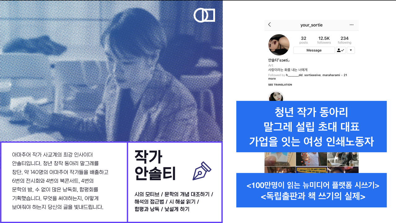 <100만명이 읽는 뉴미디어 플랫폼 시쓰기 - 시인 안솔티>