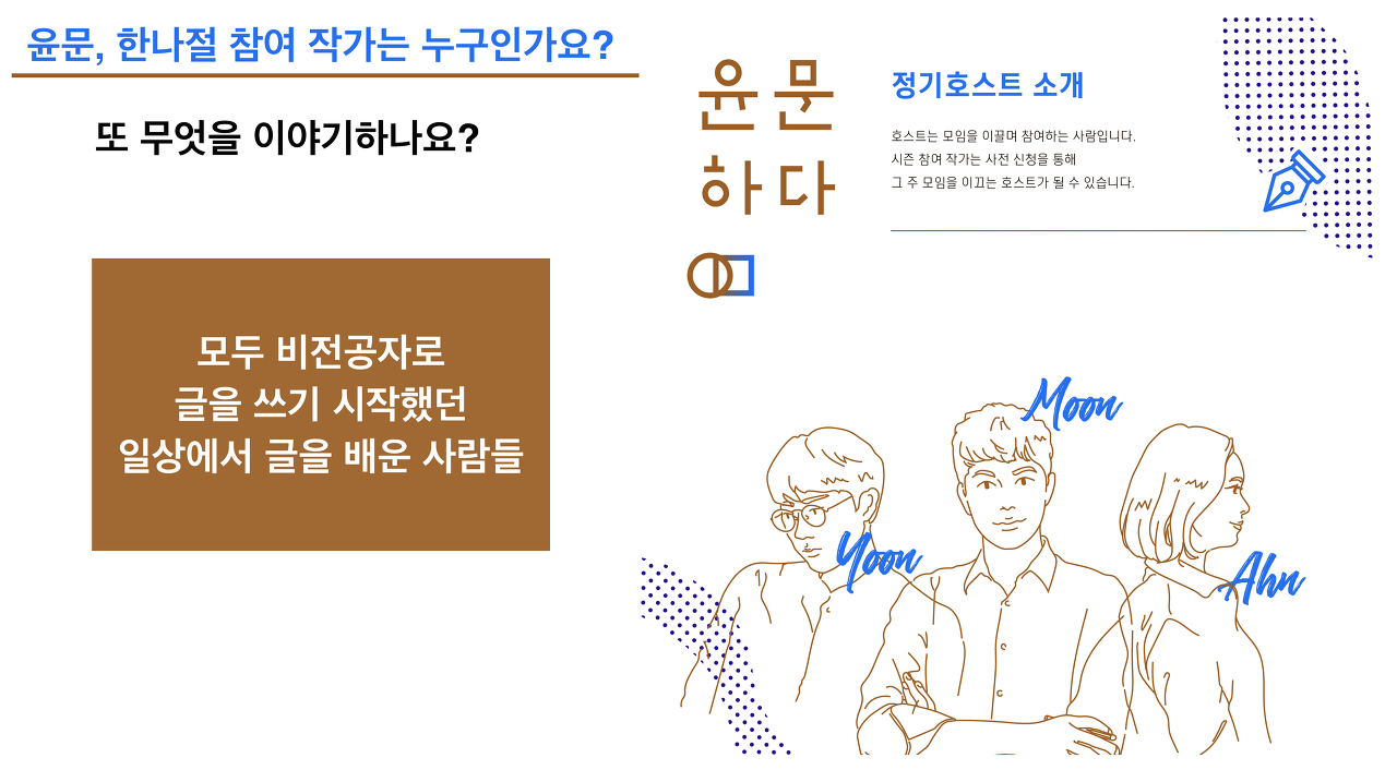 신진 청년 작가들과 함께 쓰고 대화하는 밀도높은 주말 오후. 어떠신가요?