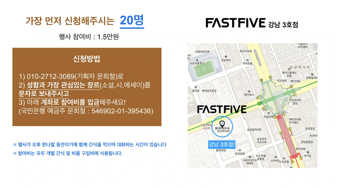 ※ 참여비는 모두 개별 간식 및 비품 구입비에 사용됩니다.