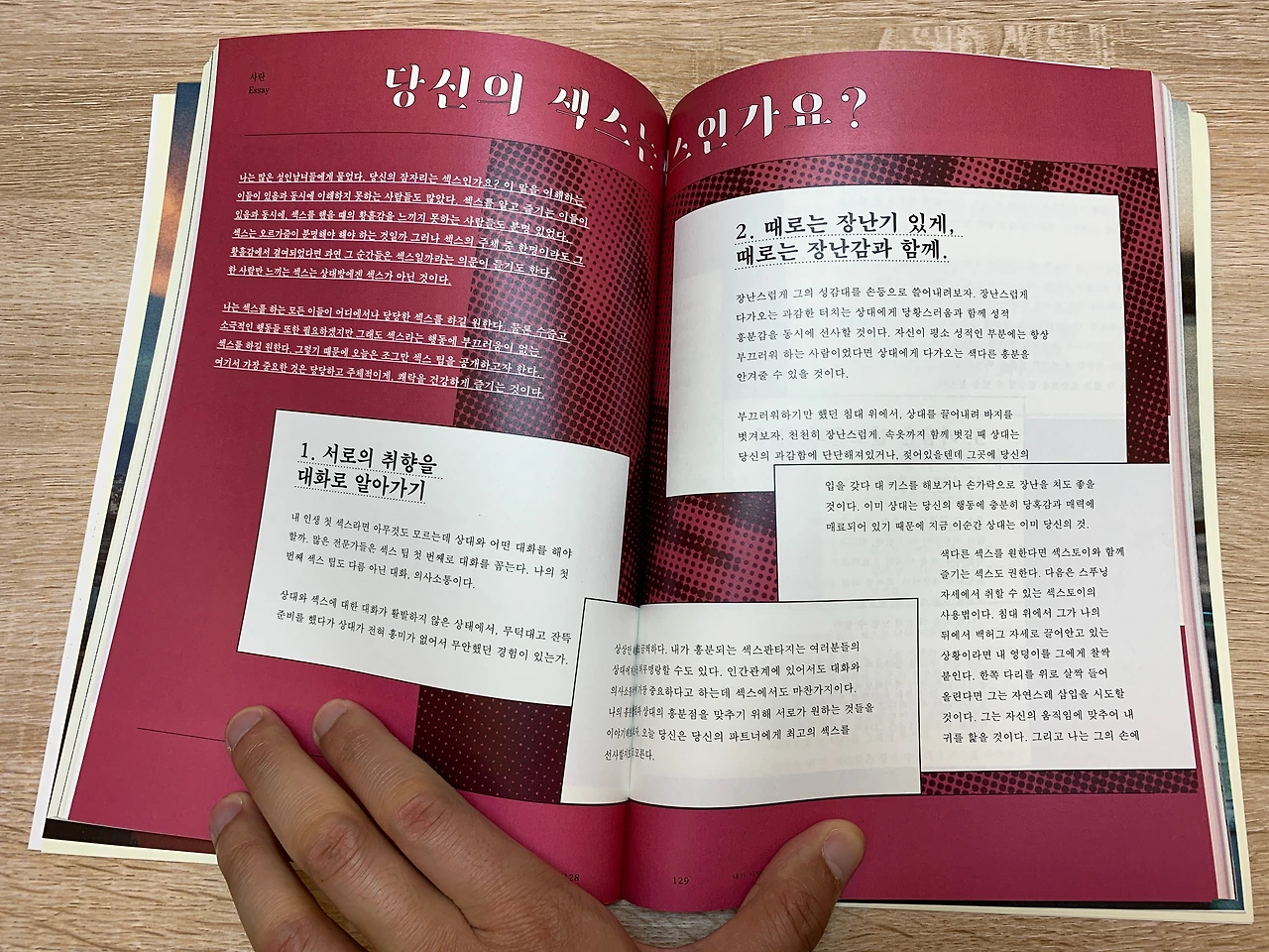 - B5 사이즈 고급 용지로 233페이지 풀컬러 인쇄했습니다.