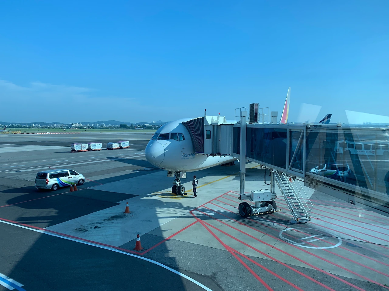 비행기 입구에는 신문들이 있었다. 바로 전날 판문점에서 남북미 정상회담이 있었고, 신문들은 저마다 이 소식을 중요하게 다뤘다. 신문을 들고 비상구 옆 복도 쪽 내 자리에 앉았다. 창가 쪽에는 아시아계 외국인이 탔다. 딱히 할 말은 없어서, 비행기 입구에서 가져온 신문을 읽었다. 가져온 신문의 1면부터 마지막면까지 훑었다. 어느덧 도착 20분 전이다. 옆자리 외국인이 말을 건다. 영어할 수 있냐고. 나는 한국어 할 줄 아시냐고 묻고 싶었지만, 이 사람에게도 영어가 모국어 같지는 않았다. 그래 한국어는 공용어가 아니니까. 잠시 뇌정지 후. "리를 빗..?"(조금...?)이라 말했다. 아무튼 내리는 20분 동안 내게 가능한 수준의 영어로 이런 저런 대화를 나눴다.