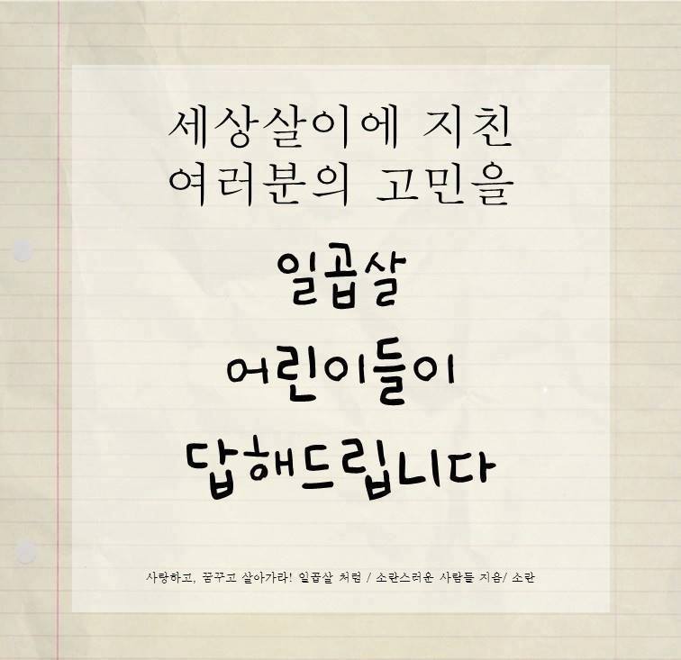 세상살이에 지친 우리들의 고민에 일곱 살 어린이가 답해드립니다