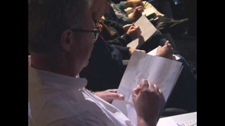 이제 팀 브라운은 그 그림을 옆사람에게 보여주라고 요청한다.