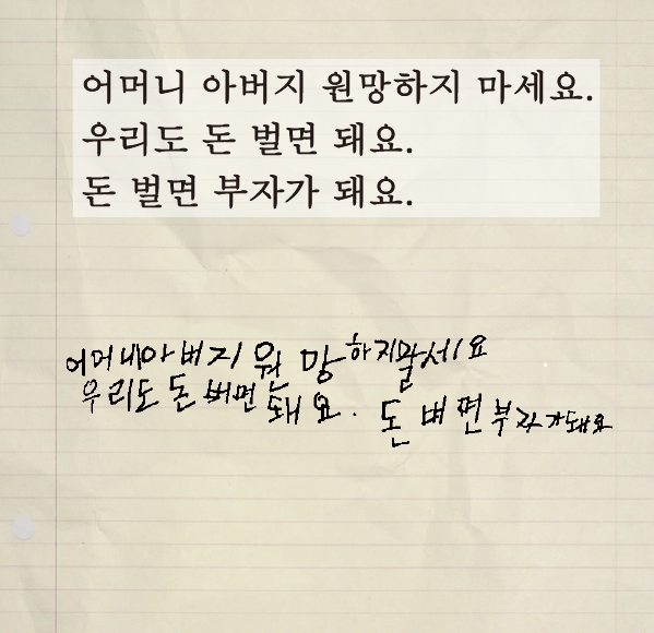 이 명쾌함을 조금 현실적으로 다듬다 보면 달리 방법이 없으니 네가 노력해봐, 복잡하게 생각하지 말고 쉽게 생각하자, 하는 아이들의 순수한 메시지가 보일 것이다.