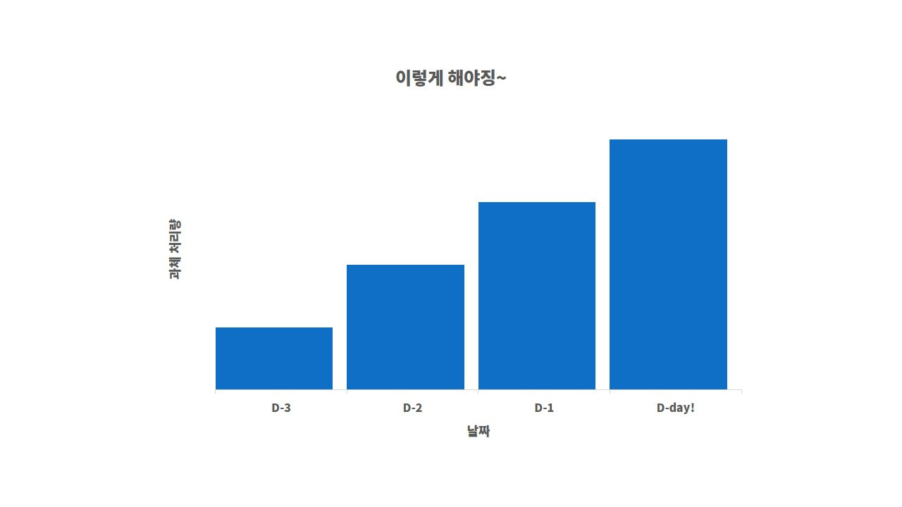 마감 기한이 다가옴에 따라 점차 일의 양을 늘려가 기한 안에 과제를 완성하는 계획을 생각할 것이다.