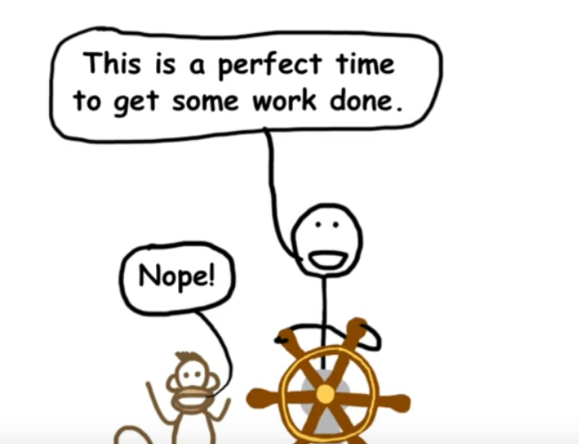 합리적 결정권자가 생산적인 일을 하기 위해 합리적인 계획을 짜면 아몰랑 원숭이가 난입해 '음...아니!'로 일축하고 그럼 어느새 미루기 대마왕은 페이스북을 놓지 못하고 침대를 떠나지 못하는 상태가 된다.