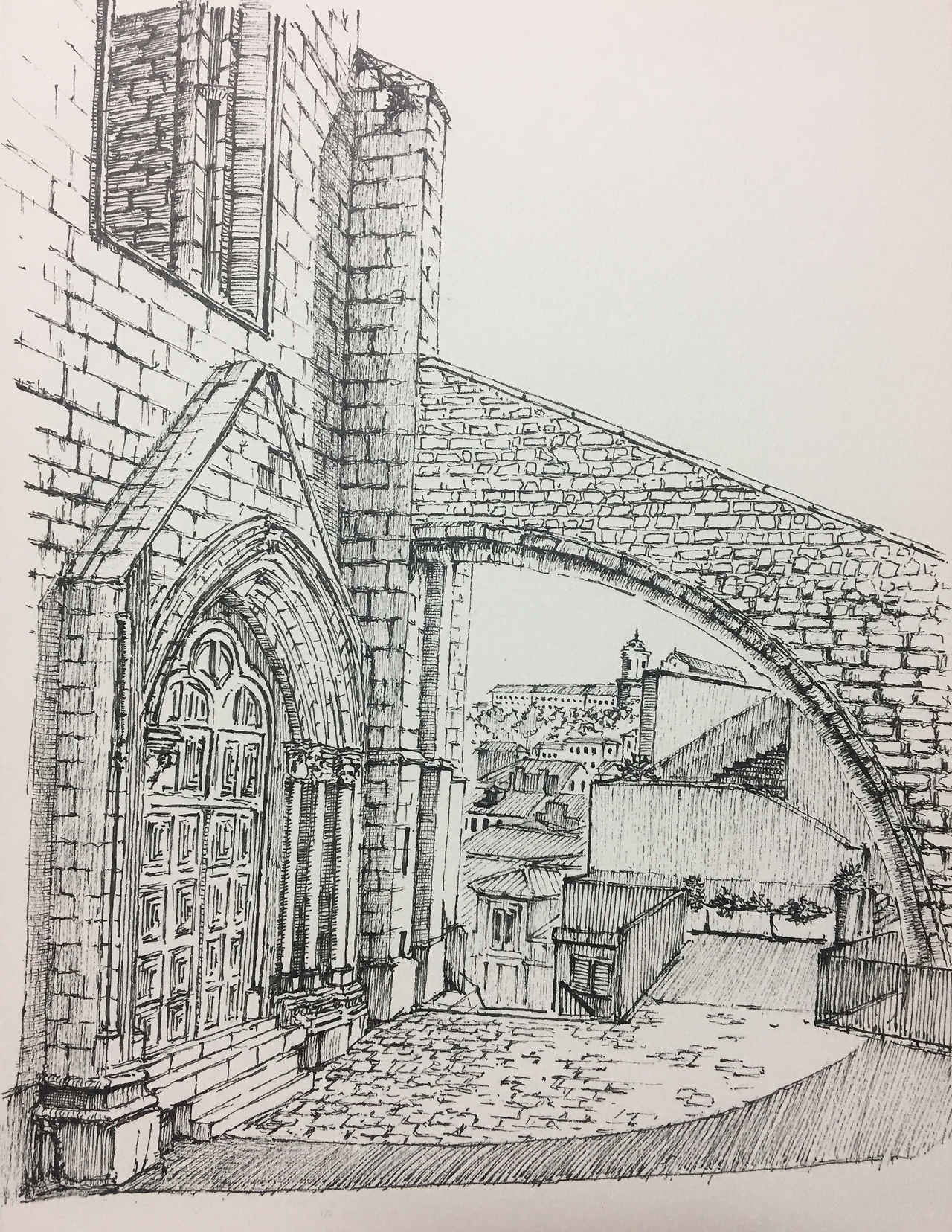 반 아치형 통로 사이로 보이는 눈 앞의 모습이