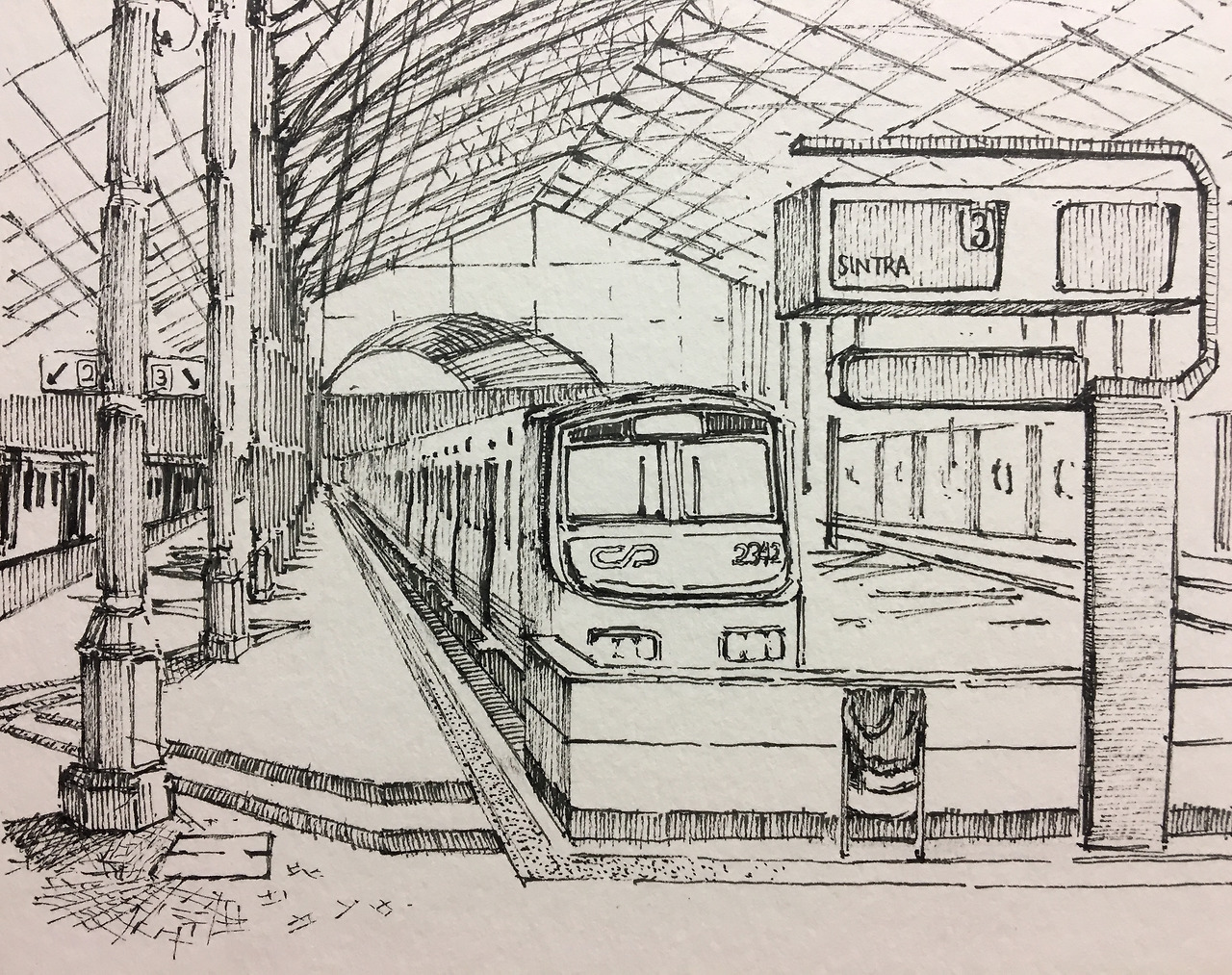 지금 머릿속에서 가장 먼저 생각나는 것. 나는 가방에서 펜과 드로잉북을 꺼내 플랫폼 주변에 앉아 이곳의 모습을 담아보기 시작한다.