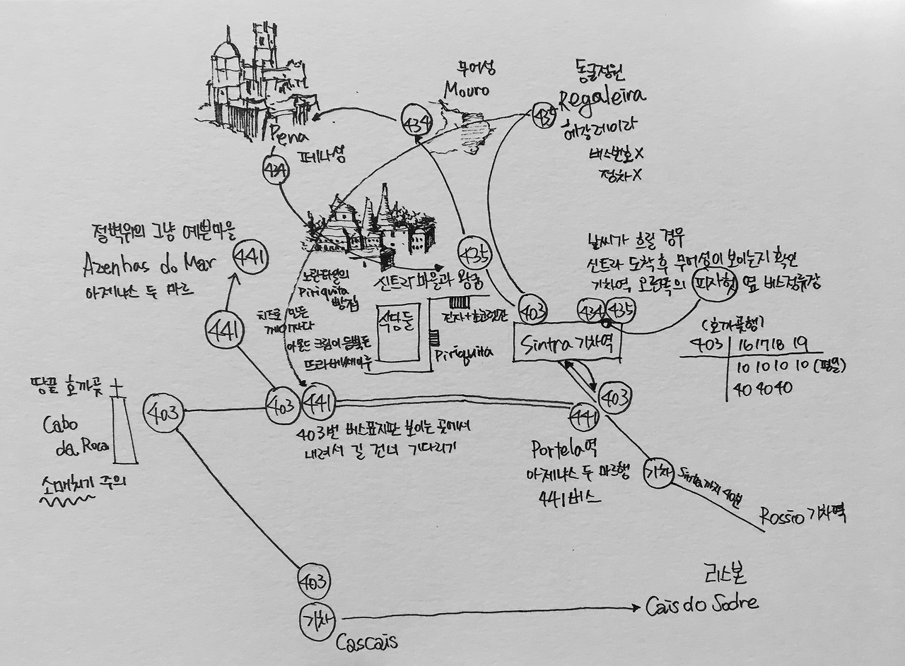 그는 머물던 한인민박 숙소에서 직접 만들어 제공해준 것이라며 신트라 주변 여행을 위한 가이드용 지도를 펼쳤다.