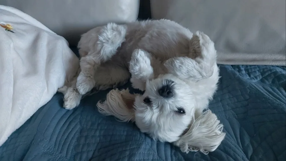 우리 [연금]입니다. 몰티즈입니다. 나이는 만 3년 되었습니다. 제가 출근하면 혼자 집에 있어야 합니다. 그게 싫어서 출근 시간을 조금 늦추고 있습니다. 이른 점심 먹고 12시경에 집을 나섭니다. 출근시간을 이렇게 조정할 수 있다는 게 자영업의 장점입니다.