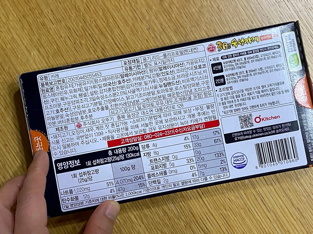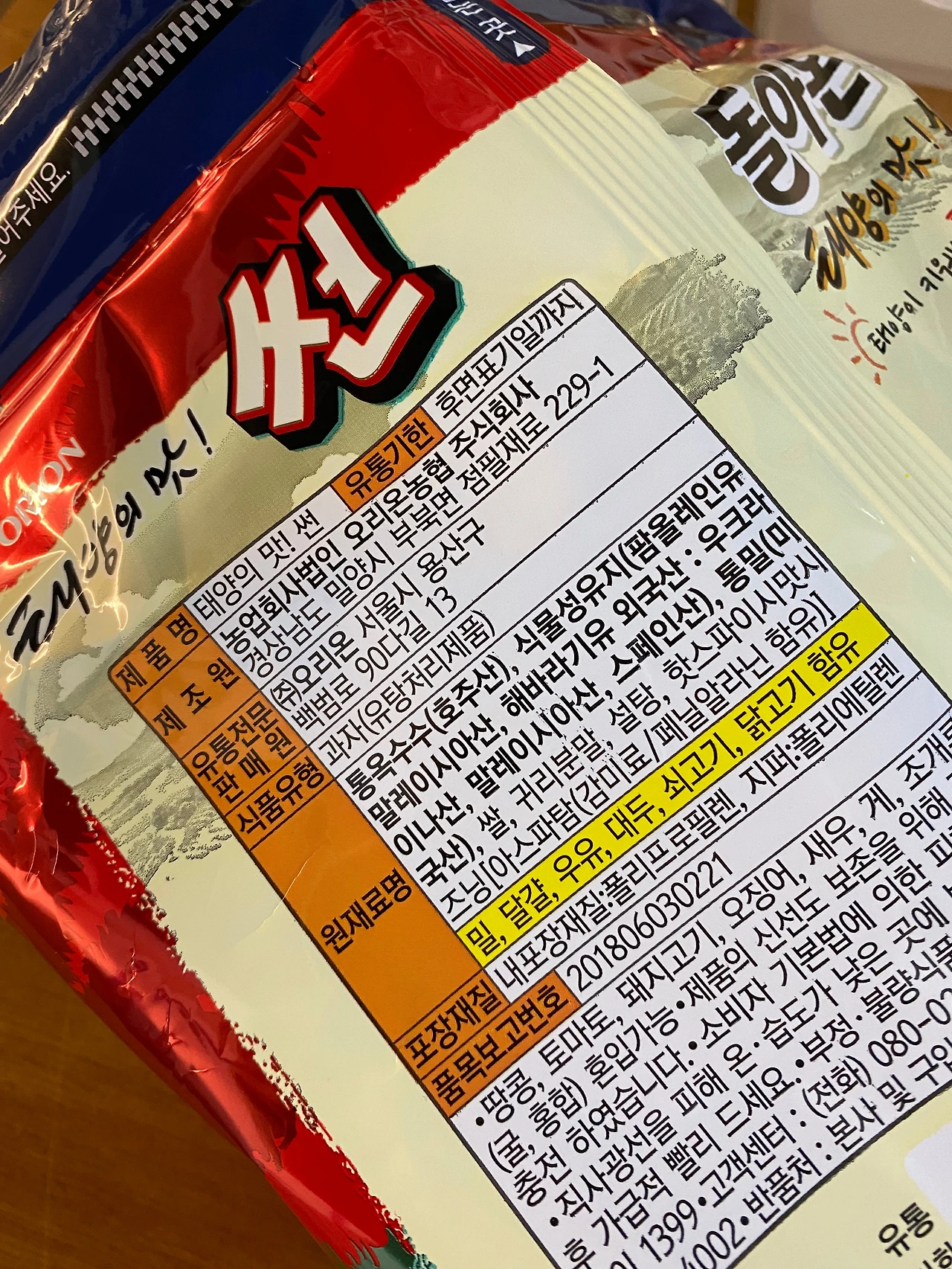 몇 달 전 채식 주간에는 집에서 카레를 만들었다. 평소 내가 좋아하는 카레는 '카레의 여왕'이지만 그 제품에 들어있는 퐁포드육수가 사골이기 때문에 다른 제품을 구입했다. 집에 도착하여 야채를 썰고, 카레 포장을 뜯은 후 알게 된 것은 각종 육류소스(비프엑기스, 쇠고기분말, 닭고기조미분말)가 들어가 있다는 것이었다. 심지어 쇠고기, 닭고기가 함유되어 있다는 표시가 별도로 되어 있었다. 역시나 '어쩔 수 없지' 하며 카레를 만들어 먹었고, 실패의 채식 주간이 되었다. 그래도 이 날의 경험 때문에 채식 주간에는 제품 포장 뒷면을 확인하는 습관이 생겼다.